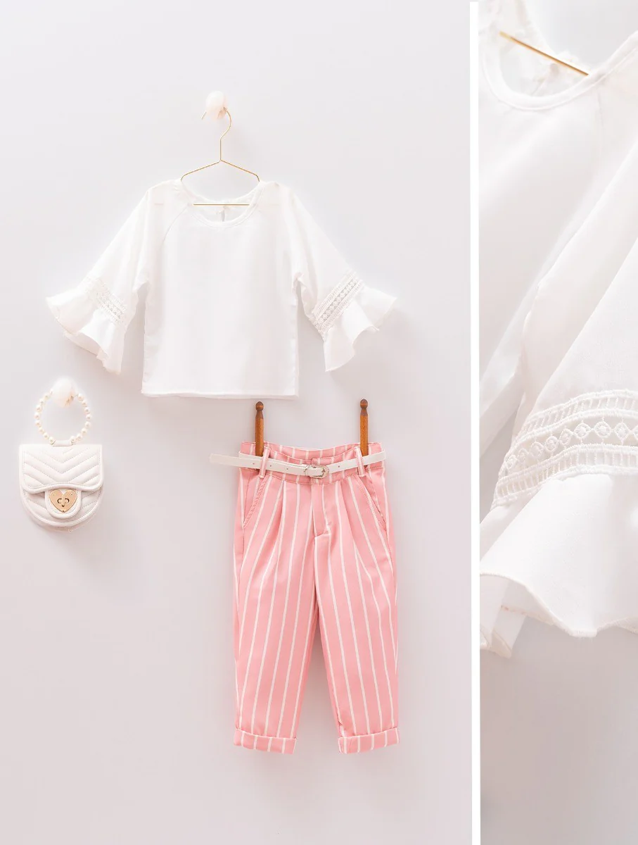 Girls Lace Blouse & Trousers 4 Piece Set for Spring-Summer