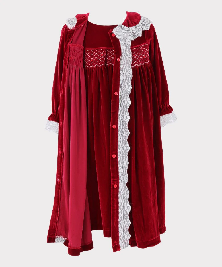 A lady-like, classic smocked velvet nightgown set is the perfect Christmas gift for your little princess from SIRRI-Beau KiD collection. This velour gown and nightie set is made with love with close attention to details to provide elegance, comfort, and warmth all at once.