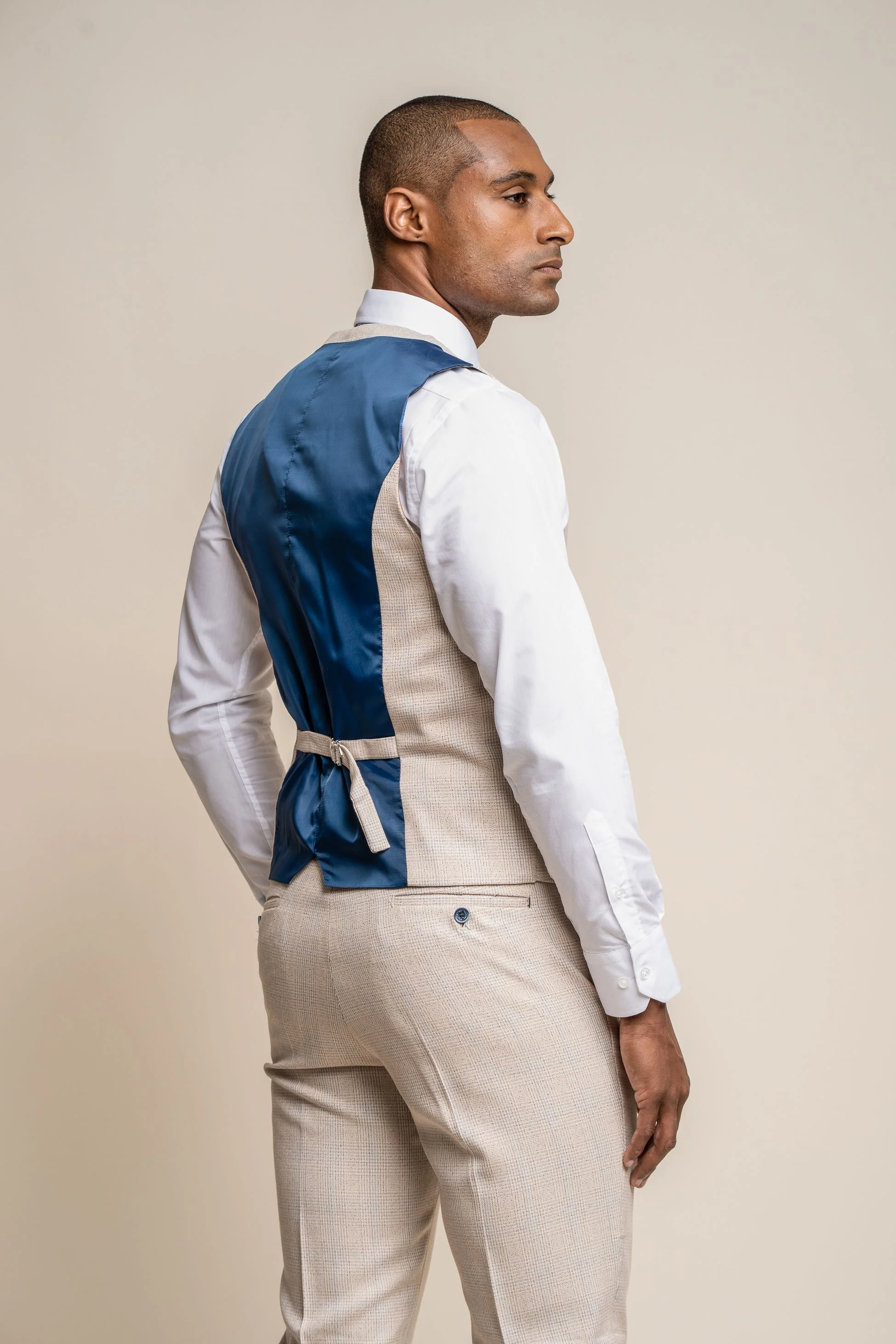 Men's Tweed Glen Check Slim Fit Formal Waistcoat - CARIDI - Beige