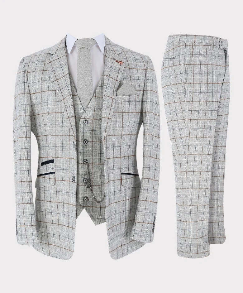 Men's Suit Formal Tweed Windowpane Check 3 Piece Slim Fit Set