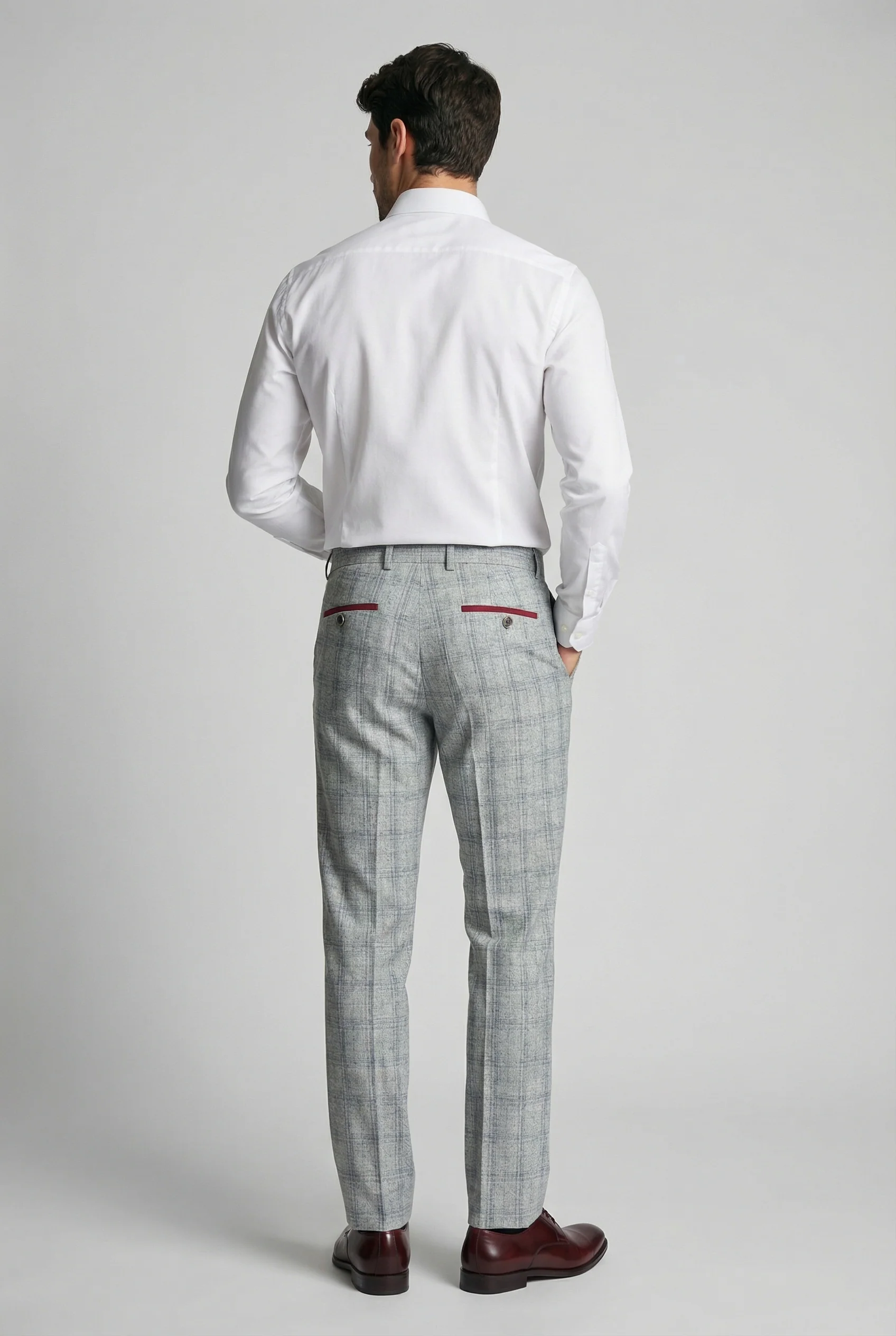 Men's Tweed Check Slim Fit Grey Trousers - ANDREW - Grey
