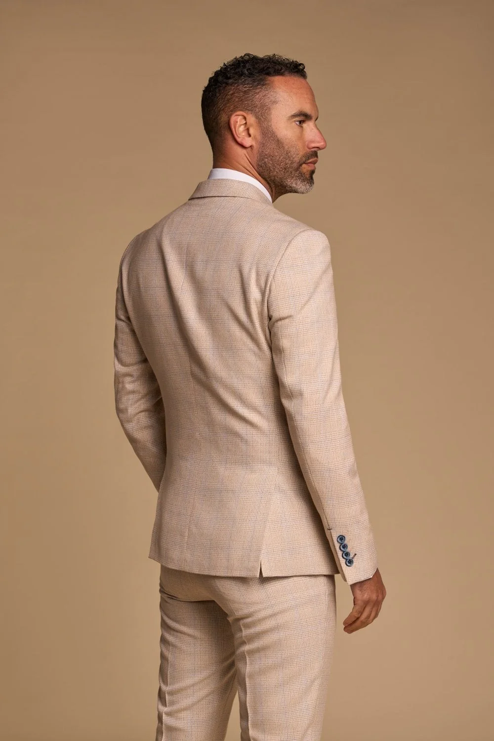 Men's Glen Check Double-breasted Suit Jacket - CARIDI - Beige