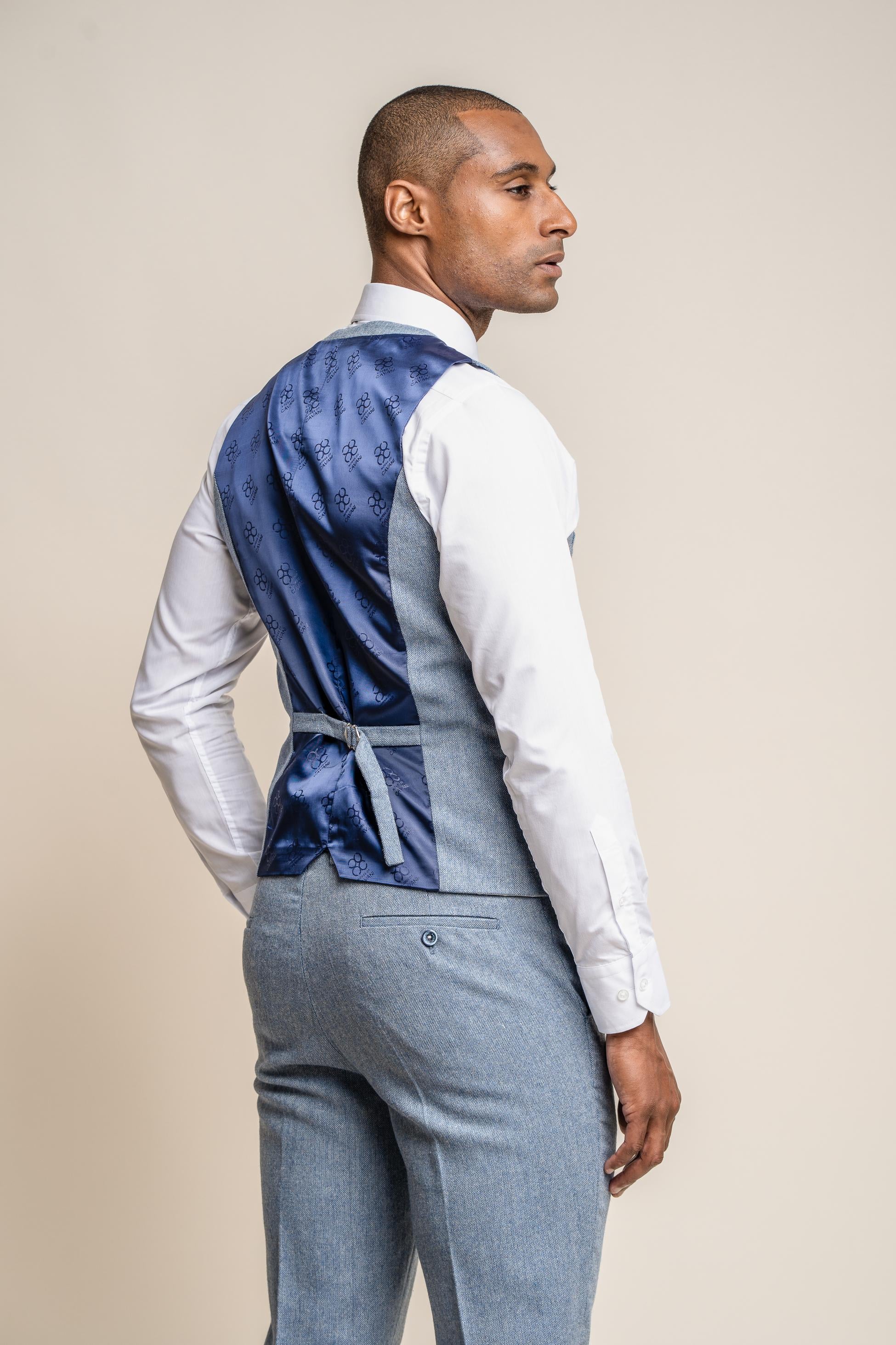 Men's Tweed Slim Fit Waistcoat - WELLS Blue - Light Blue