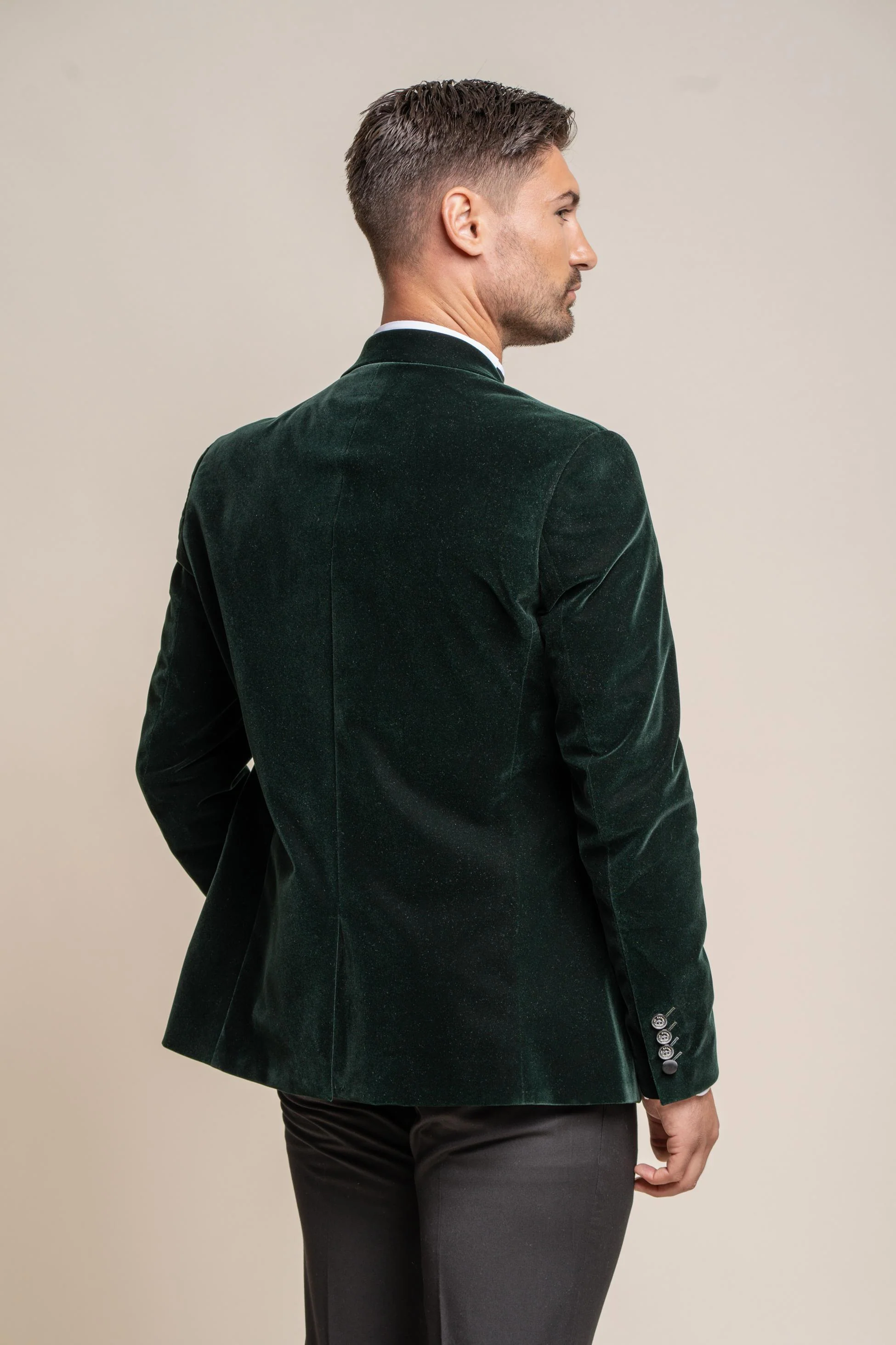 Men's Slim Fit Velvet Tuxedo Blazer - ROSA - Forest Green