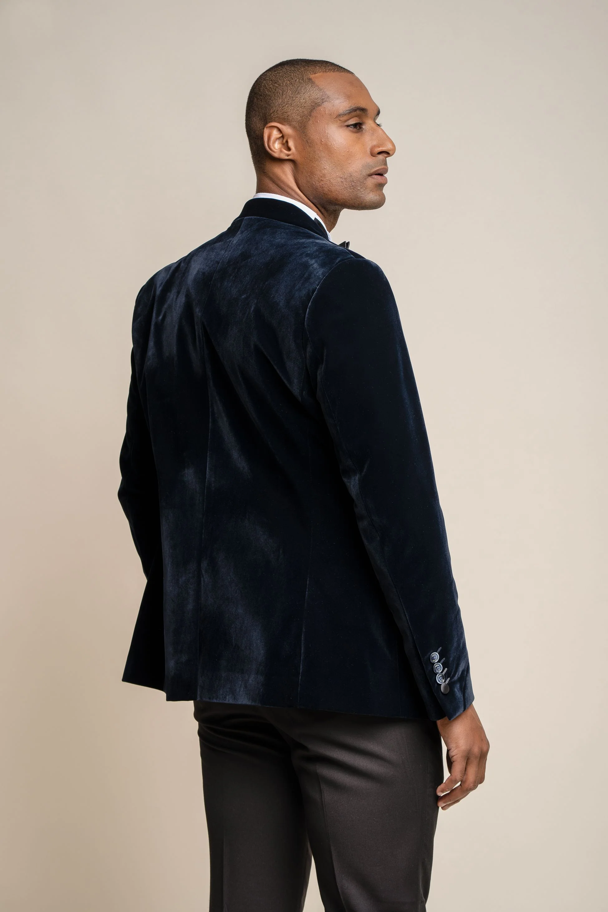 Men's Slim Fit Velvet Tuxedo Blazer - ROSA - Navy Blue